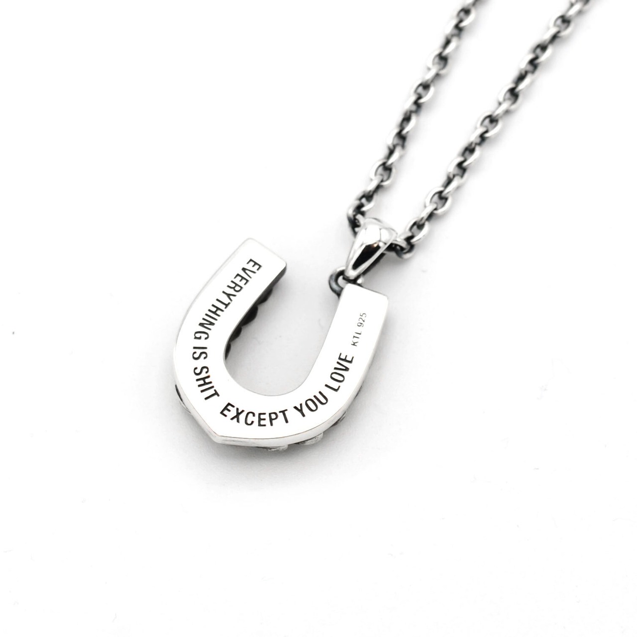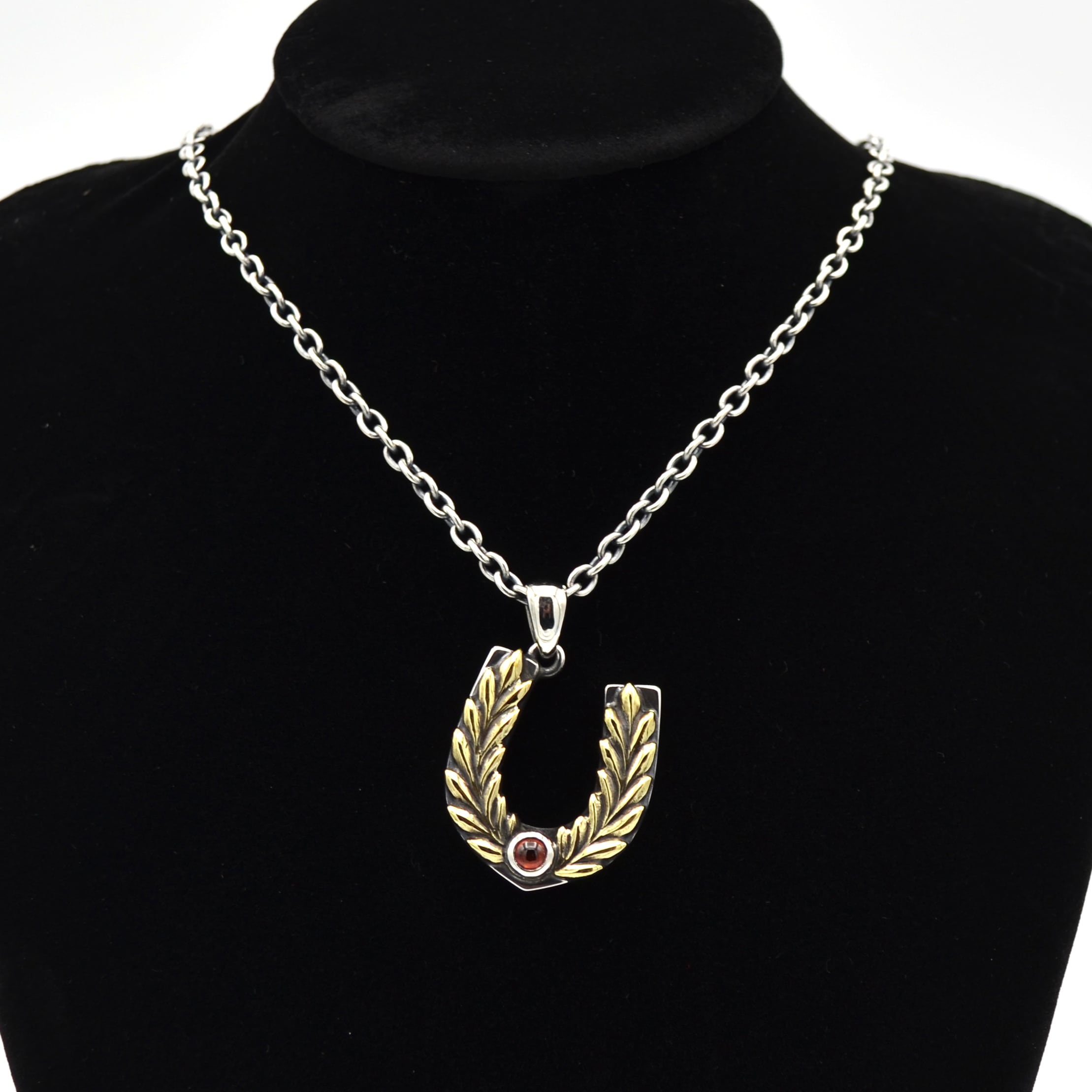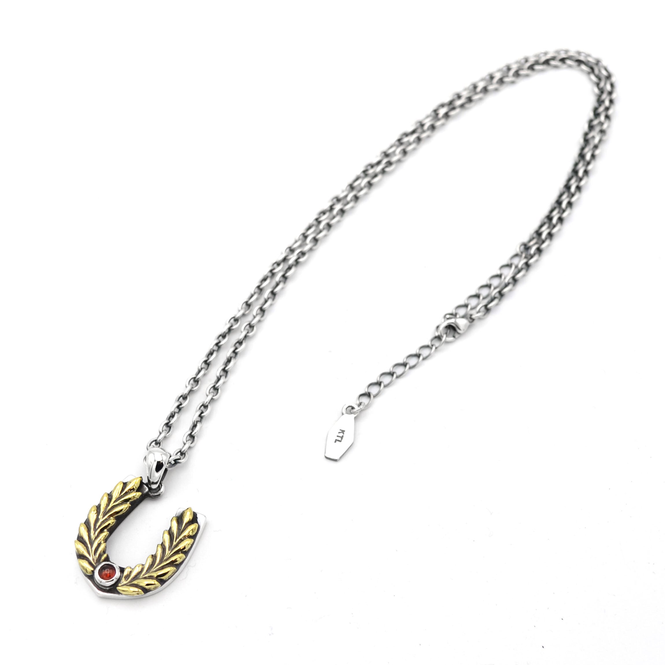 U字型のフォルムから「幸運を受け止める」意味を持ち古くからラッキーアイテムとして海外で親しまれているホースシューと「勝利/栄誉」の象徴lであるlaurel(月桂樹)を組み合わせたKILL TIME LIFEのネックレスです。