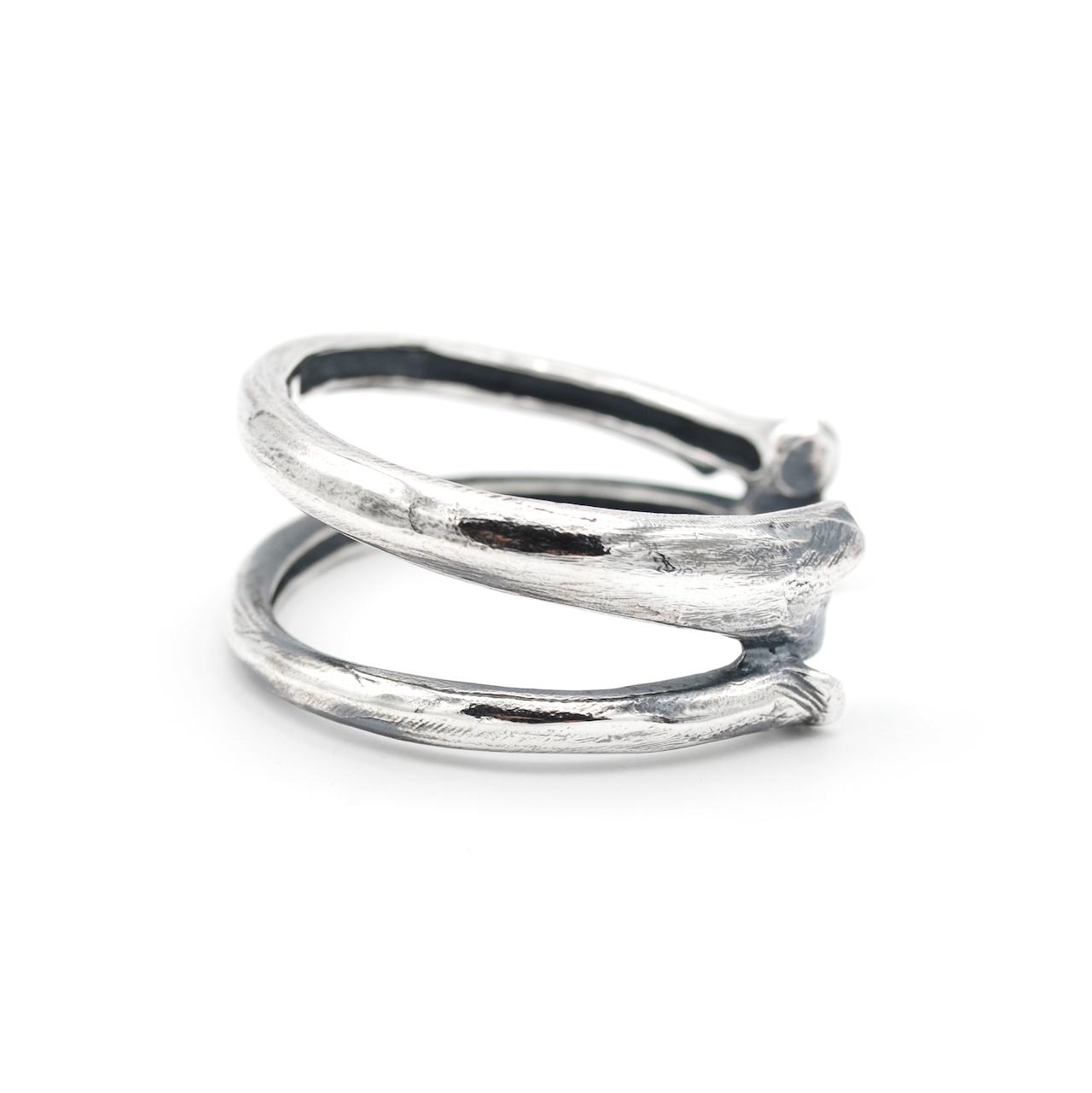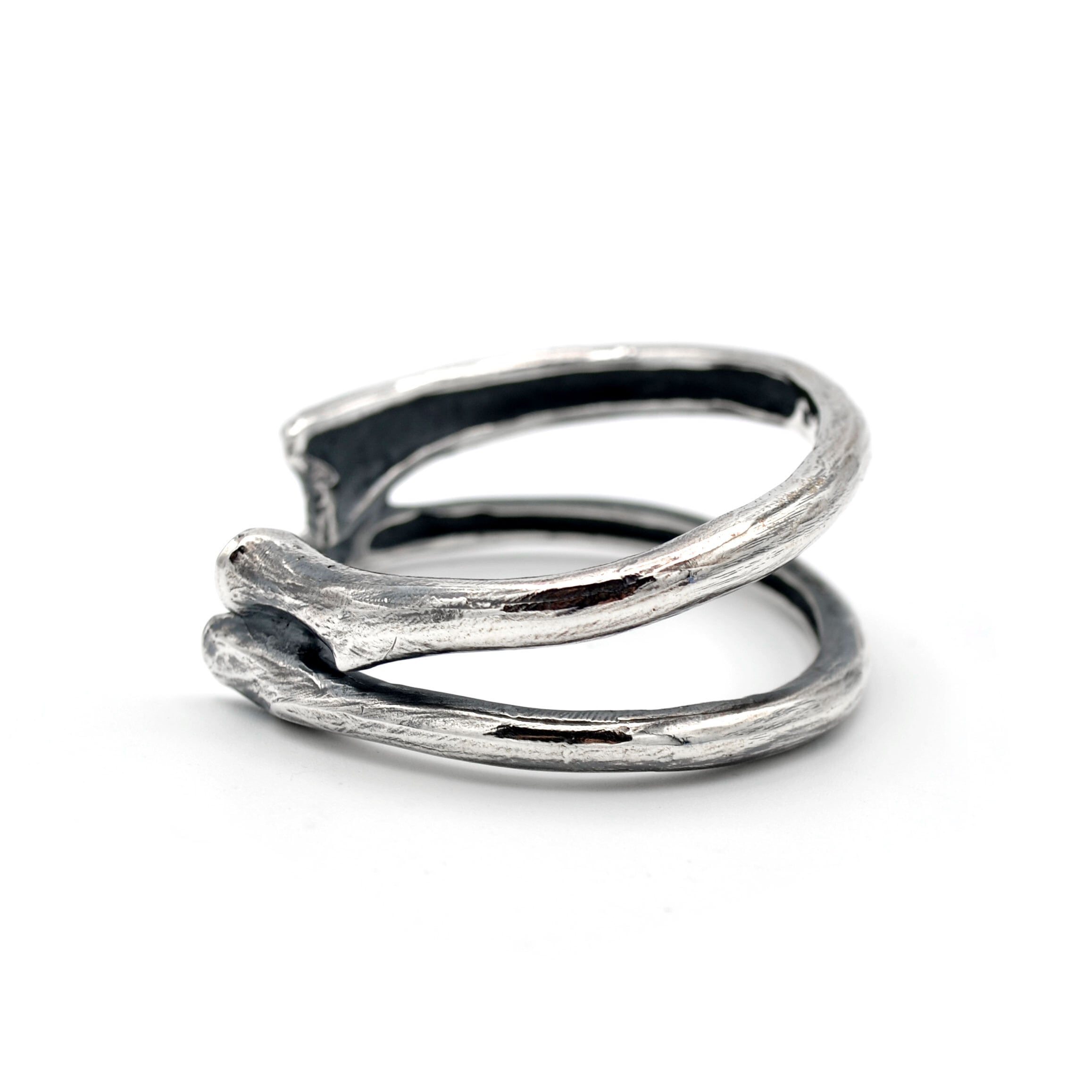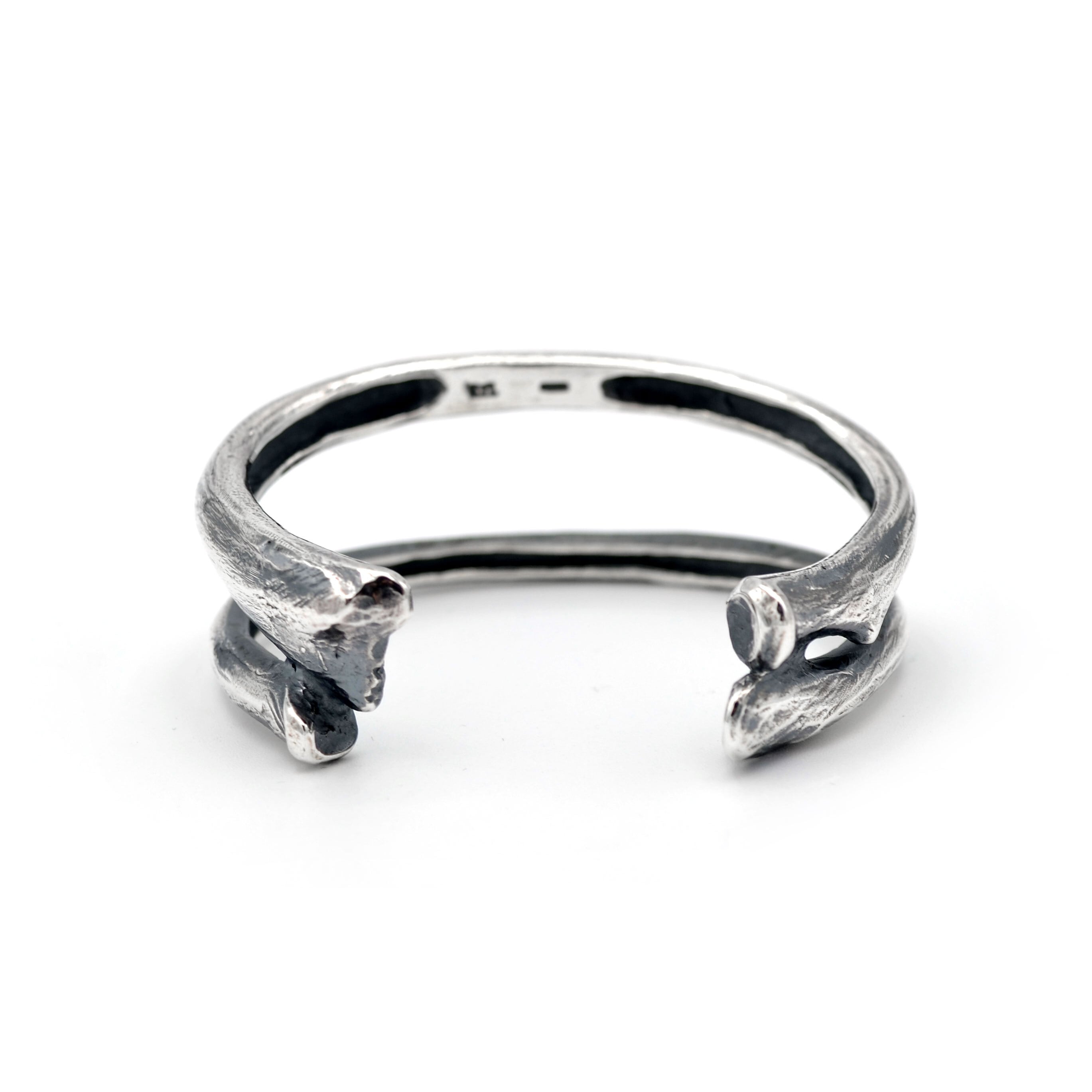 大腿骨を2本組み合わせたようなデザインのバングルになります。