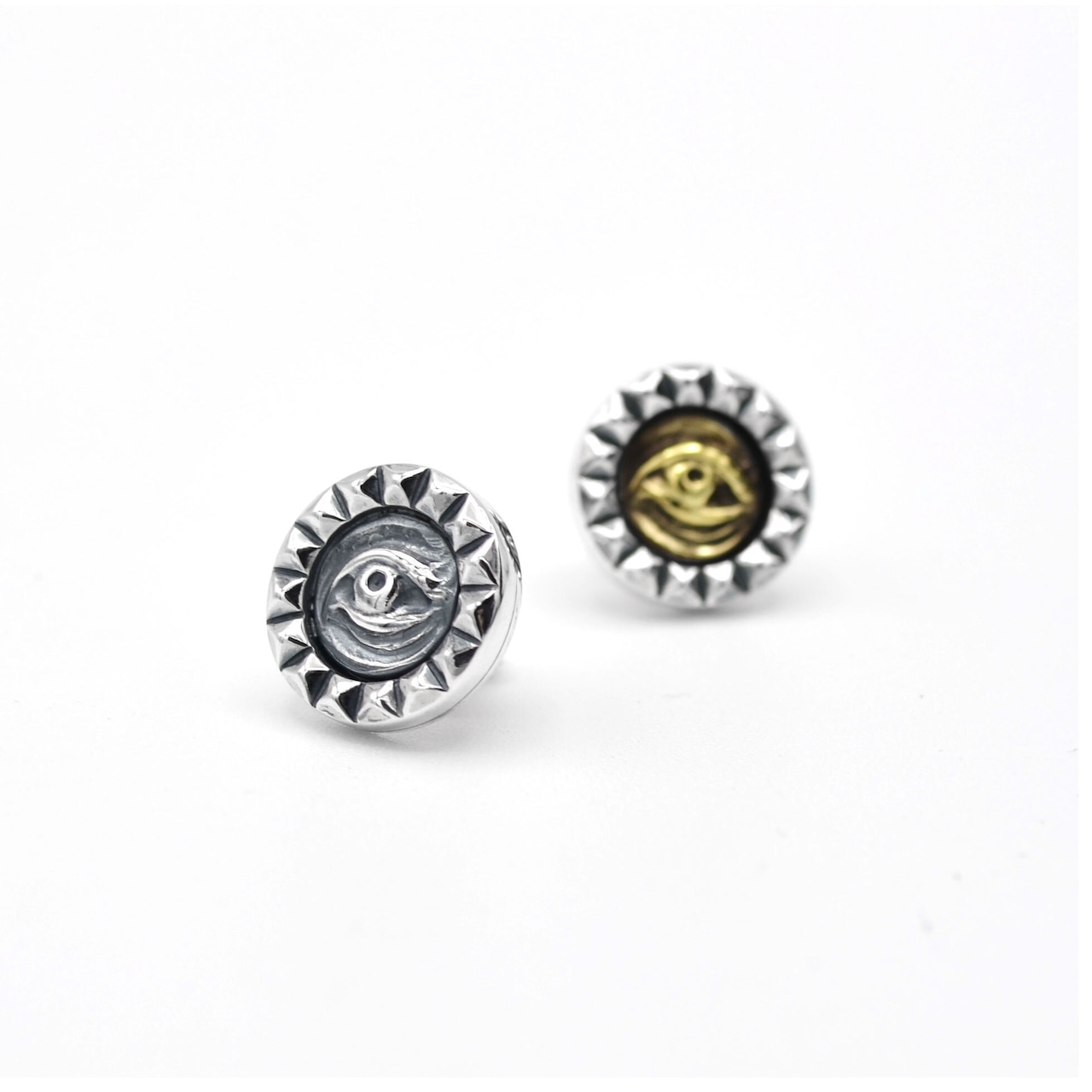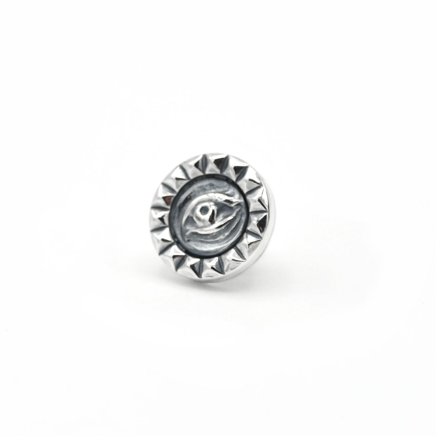 その周囲を囲む放射状のスタッズは、太陽やオーラを想起させ、内なる覚醒と意志を象徴しています。